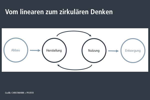Die klassische Bauwirtschaft folgt meist einem linearen Prinzip. Es werden Rohstoffe gewonnen, verarbeitet, genutzt und schließlich entsorgt. Das belastet Umwelt und Klima und verursacht einen hohen Ressourcenverbrauch.
