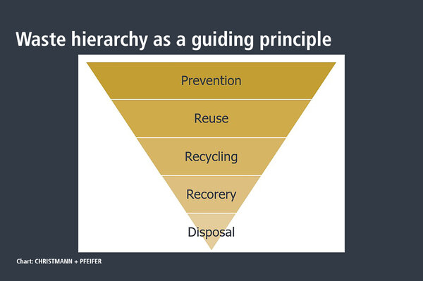 The central part of the circular economy is the so-called waste hierarchy. It specifies how materials should be handled after use, prioritizing options from the most environmentally friendly to the least sustainable.