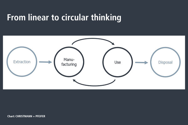 The traditional construction industry usually follows a linear principle. Raw materials are extracted, processed, used, and finally disposed of. This puts a strain on the environment and climate and causes high resource consumption.