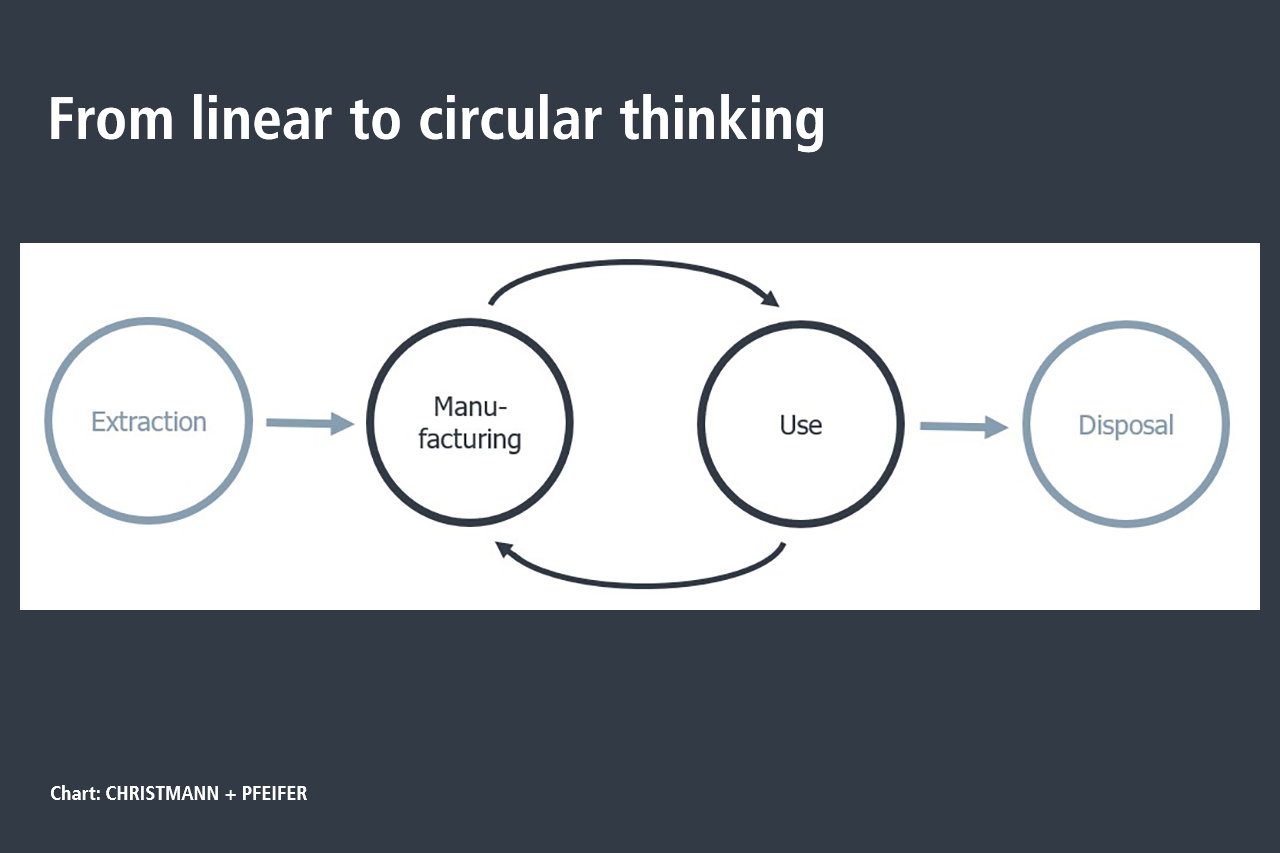 The circular economy on the other hand aims to extend the materials’ life cycle. Raw materials should be kept in circulation for as long as possible through reuse, repair, repurposing, or high-quality recycling. That means: less waste, less resource consumption, more sustainability.