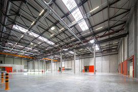 Die von C + P erbrachte Leistung umfasste Konstruktion, Fertigung, Lieferung und Montage der Fachwerkträger und der Dachkonstruktion für die Logistikhalle.