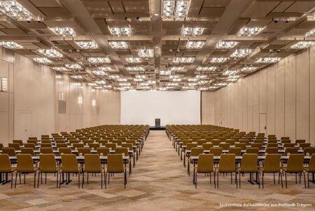 Stützenlose Ballsaaldecke aus Preflex®-Trägern, München