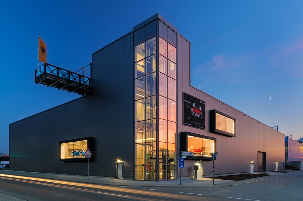 Mit ihrer markanten Architektur sind Autohäuser von Porsche immer wieder ein Blickfang.
